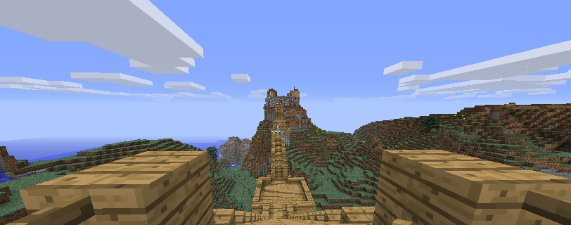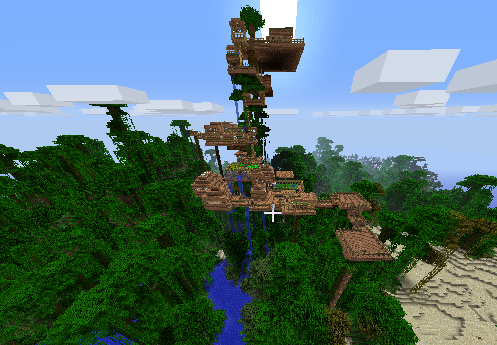 In the foreground is Jon’s castle being built. To the right, B.T.’s Castle, to the Left of the Bridge system was the Village on the Mountain, and tot he north or further back is where Bart’s Castle is. You can still see his first temporary house floating in the sky.