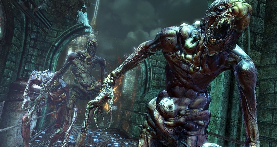 One of the first things I realized is that this game has an fixation with killing children. Now I know some of you are probably thinking to yourself “That’s terrible”, however I find it to be a nice twist cause in a lot of video games they tend to spare the children [Except the Ultima RPG Games (John…)] but one of the first “flashbacks” shows one of the monsters bent over a cradle eating a baby. and not long after that there is another flashback showing a teacher telling all her students to get under their desk because the “singularity explosion” is coming but as soon as you snap back into reality all you see is the bodies of the children under their desks.