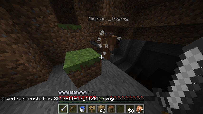 So the first one came about when I was running through a cavern deep under ground not far from the starting village on the Minecraft World that we here @ ONS Gaming have been working on. Pretty simple affair; run through the cavern put up torches, mine minerals(resources) and kill mobs that attack you. But! then I turned around a corner and saw this: