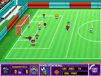 The game also does a cool thing where you can pick your formation. Normally in a kids game they just have one default thing. Not here. You can have a defensive formation, a balanced formation, an offensive formation, and you can alter their behavior. This adds a layer of strategy that most games targeted at this age group aren’t used to having. From there the game starts, and you can pass, run, shoot and slide tackle. Simple, right? Problem is, the passing is kind of off and the characters crowd everywhere so if you’re playing on expert, the game can be kind of boring.