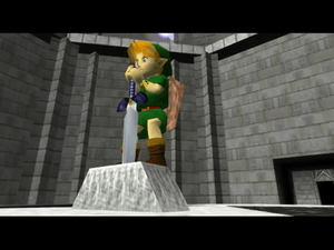 In Ocarina of Time (OoT) the Temple of Time (ToT) happens to be located within the Hyrule Castle Town which happens to be the cultural and commercial center of Hyrule. Built by the original seven ancient sages. Within the Temple of time it holds an alter of which after completing the three kid dungeons and gaining the three stones the player can open the Door of Time. Past the Door of Time is a seal: the Pedestal of Time that protects the entrance to the Sacred Realm. In the pedestal happens to be the Master Sword. Of which upon the player grabbing and picking up time skips by seven years and upon placing the sword back takes the player back seven years.
