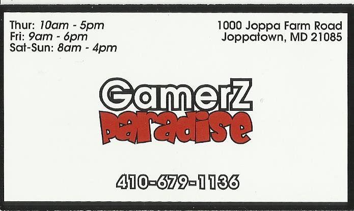 If you’re in the Harford/Baltimore County area of Maryland then check out Gamerz Paradise @ the Joppatown Flea Market off of Joppa Farm Road for Vintage and new used games, consoles, and more!